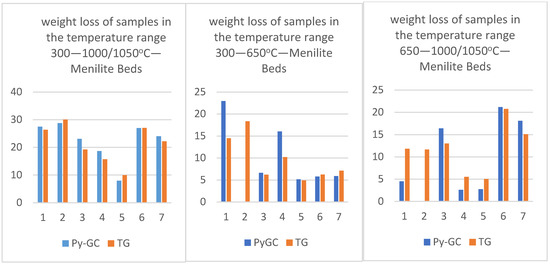 - The most significant difference between the two groups of rocks revealed by TG/DTG analysis was a two-stage weight loss in the case of Menilite shales, while the Istebna shales were characterized by a single-stage weight loss at the main decomposition temperature range. The two-stage decomposition of Menilite samples demonstrates the complexity of the organic matter in these rocks and the two distinct episodes of pyrolysis gas release.