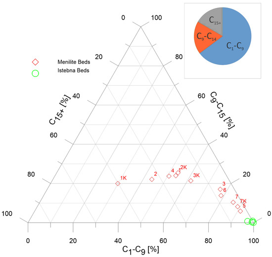 - Thanks to the Py/GC analysis, the distribution of hydrocarbon fractions generated by both types of source rocks was obtained. This made it possible to distinguish between the generation capabilities for light hydrocarbons by Istebna Beds and oil by Menilite Beds. The variation between these groups is a direct result of their source nature.