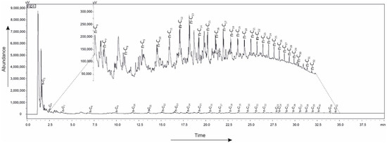 - Temperature program: 3 °C for 5 min with a temperature gradient of 1 °C/min to 360 °C, then 360 °C for 2 min;