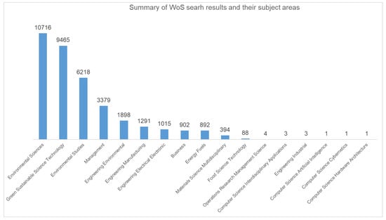 Summary of the WoS search results using “sustainable product design” and their subject areas.