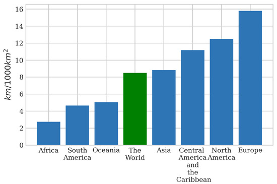 The choice of UIC statistics provides an appropriate context for railway performance in Europe, which is a region where railways have their historical roots and have developed intensively since the beginning of the 19th century [49]. The UIC data were obtained from UIC reports and studies available online. They mainly relate to operational parameters. UIC statistics are a valuable source of information due to the systematic presentation related to the importance of railways for the economy. For infrastructure data, publicly available data from Worldstat and Eurostat were used to show the level of development of the railway network. They better reflect the global diversity of the railway network.
