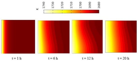 Temporal distribution of temperature during the discharging of the silicon domain.