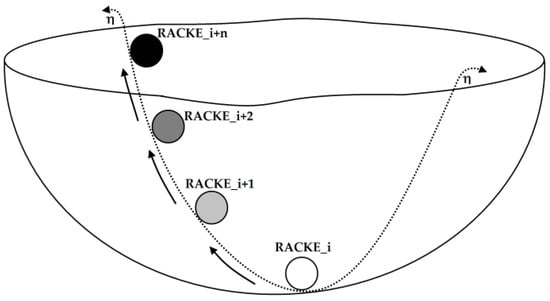 The application of the RACKE method to multi-machine systems in transient stability analysis is conceptually similar to the rolling ball in a container. Under initial conditions, the power system operates in a mode of steady-state stability. At the moment a fault occurs, the machines accelerate and the system gains kinetic energy that is stored in the rotor of generators. Some machines can accelerate and store kinetic energy despite clearing the fault, distancing the system from the initial stable operating point. Thus, the final operation state depends on the total kinetic energy absorbed/delivered by the machines in the post-fault period. There is a maximum or critical amount of transient energy for a network configuration that can be absorbed. Consequently, when exceeding the critical energy threshold, some control action must be taken.