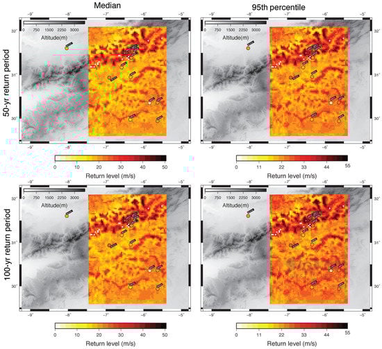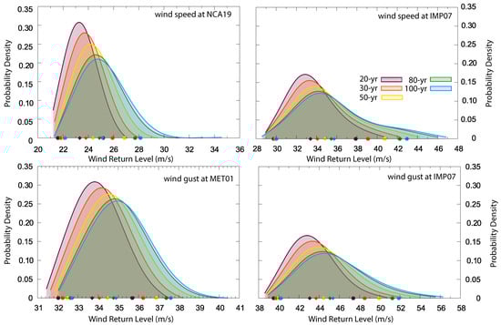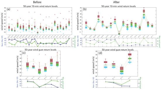 Nevertheless, the resulting return levels provided in Section 4.2 are based exclusively upon the observations. Table 1 indicates that wind return levels were estimated for two different variables, the daily maximum 10-min wind averages and daily maximum wind gust. The total number of experiments, considering all possible combinations of methodological choices in Table 1 at all locations where there are available observations is ca. 10,000.