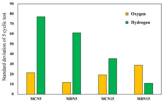 Standard deviation of four representative 5 and 15 mol% Mn-CeO2 foam devices for oxygen and hydrogen.