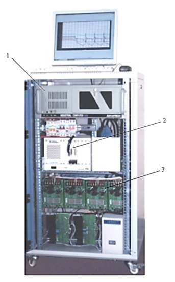Image of the diagnosis complex used: 1—industrial computer; 2—DAC/ADC cards; 3—matching devices.
