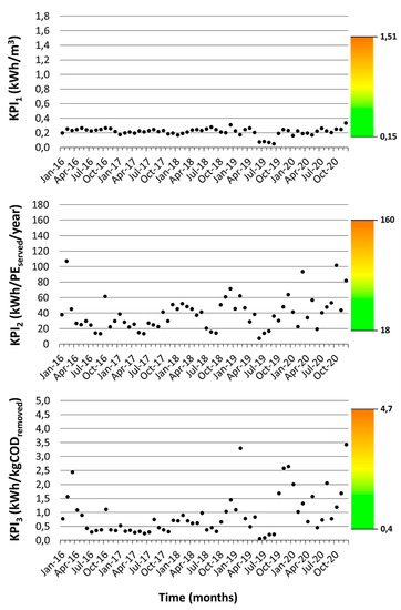| KPI3 (kWh kgCODremoved−1) | 0,84 | 0,65 | 0,42 | 0,16 | 0,73 | 0,38 | 1,20 | 1,27 | 1,46 | 0,85 | 0,93 | 0,83 |