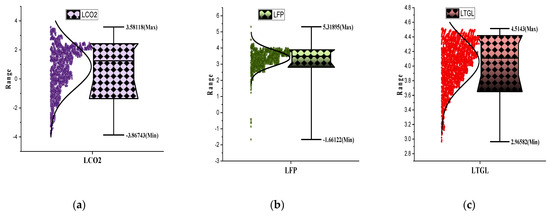 Box-plot statistics of the concerned variables such as (a) LCO2; (b) LFP; (c) LTGL; (d) LURP; (e) LTRD; (f) LLF; (g) LGCF; (h) LFD, and (i) LFDI.