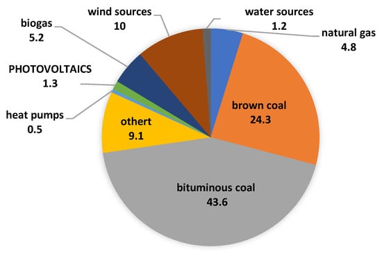 Power generation structure in 2020 (in %). Source: The Energy Market Agency (https://www.are.waw.pl/, accessed on 1 June 2021) [43].