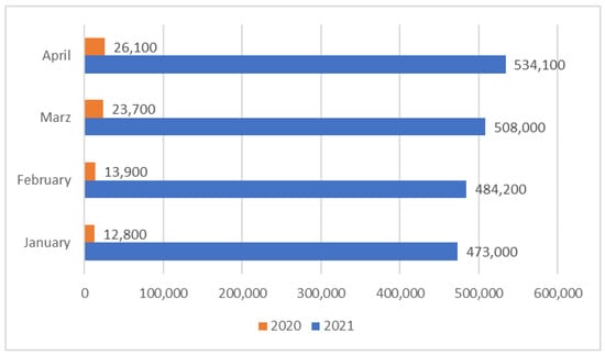 According to current predictions, Poland will not manage to meet the European Union requirement [51] concerning share of RES in gross final energy consumption. However, nowadays dynamic growth in the photovoltaic market can be observed. In 2019, a substantial increment of new PV installations took place. 2020 was a record year in the history of photovoltaics in Poland. Preliminary data for the year 2021 also prove that this trend has become very much stronger [42], as shown in Figure 2.