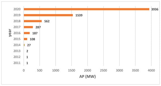 The solar photovoltaic capacity installed and connected at the end of the calendar year 2020 in Poland (MW). Source: Renewable capacity statistics 2021, www.irena.org/Statistics/ (accessed on 22 March 2021) [57].