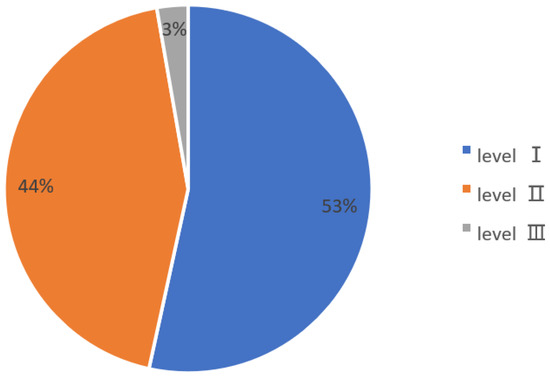 The quality of the test results is judged based on the compliance of the chart. Recheck a total of 70 test layers with sand content less than 20 m3 and flowback rate less than 80%. The gas layers and the gas–water layers are bounded by a gas–water ratio of 3.5, and the water layers are bounded by a gas–water ratio of 0. Then the test results can be divided into three categories: level I (good test quality), level II (average test quality), and level III (low test quality). The review results (Figure 14) are as follows. The recheck results are as follows (Figure 15):
