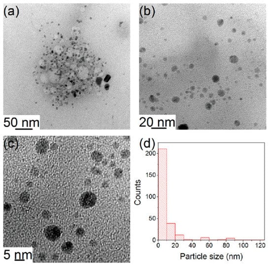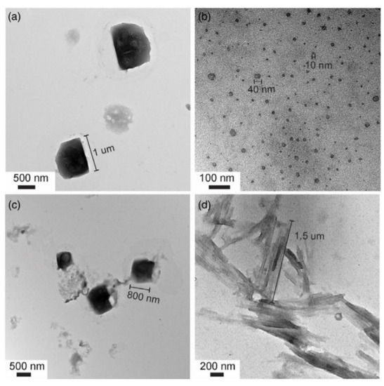 (a–c) TEM images of the LiBH4 nanoparticles and (d) corresponding size distribution. Reprinted with permission from [105]. Copyright (2018), American Chemical Society.