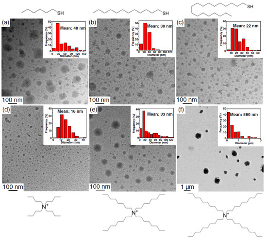 Lai et al. [105] formed LiBH4 nanoparticles (2–18 nm) (Figure 9) and then they deposited these particles onto a Ni(II) phtalocyanine substrate. The Ni(II) phtalocyanine acted as an electron-active substrate, lowering the charge transfer from Li+ to BH4−, destabilizing the composite. The composite dehydrogenated through a single step at 350 °C, releasing 14.1 wt. % H2 with some traces of oleic acid used in the synthesis of the material. The reversibility capacity fell to 3.2 wt. % H2 after five cycles of rehydrogenation.