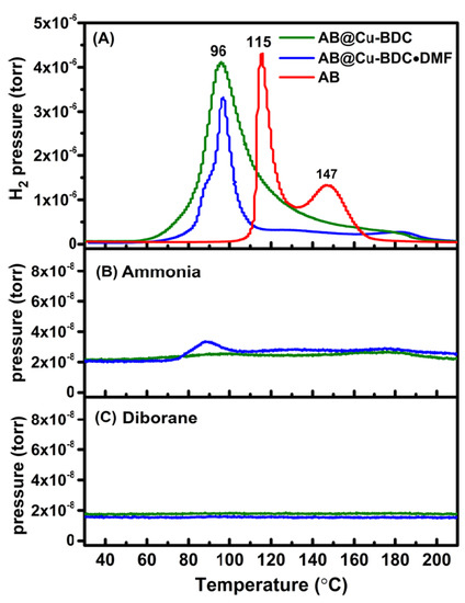 - Peil, S.; Wisser, D.; Stähle, M.; Roßmann, P.K.; Avadhut, Y.S.; Hartmann, M. Hydrogen release from ammonia borane nanoconfined in Metal-Organic Frameworks with MIL-53 topology. J. Phys. Chem. C 2021, 125, 9990–10000. [Google Scholar] [CrossRef]