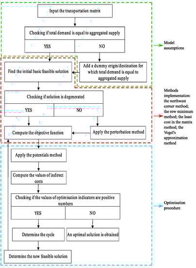 The transportation algorithm is presented in the form of a flowchart in Figure 1.