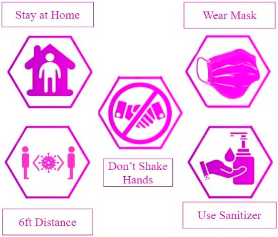 Henceforth, countries worldwide following the lockdown strategies and adopted work from home policies to control virus spread. WHO-recommended Standard Operating Procedures (SOPs) [6] are illustrated in Figure 1. Regardless of strict social distancing policies, within six months, the second wave of COVID-19 was observed globally, followed by the third and fourth waves due to easing the restrictions [7]. The fourth pandemic wave is considered the deadliest wave as it grips the world with rising cases of the highly transmissible Delta variant.