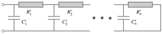 Next, the Foster network has to be converted to a Cauer network. To differentiate the components, Cauer resistances, , and Cauer capacitances, , are denoted with a prime. In the Cauer network, the capacitances are directly connected to the grounded lower port, i.e., these resistances and capacitances directly correspond to thermal counterparts. As described in the introduction, there are several ways to perform this conversion.