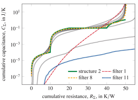 - Codecasa, L.; D’Amore, D.; Maffezzoni, P. Physical interpretation and numerical approximation of structure functions of components and packages. In Proceedings of the Semiconductor Thermal Measurement and Management IEEE Twenty First Annual IEEE Symposium, San Jose, CA, USA, 15–17 March 2005; pp. 146–153. [Google Scholar] [CrossRef]
