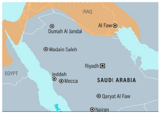 The location of the Dumah AlJandal site within a map of Saudi Arabia [31]. Reproduced from [31], Horizon Research Publishing: 2021.