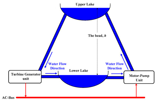 The PHES is recommended for use as energy storage, especially for large-size HRES and as energy support for existing power systems. This type of ESS has been used in many projects and studies around the world [6,7,8,9,10,11]. These PHES systems can work as off-grid [6,7,8] or on-grid systems [9,10,11] as well.