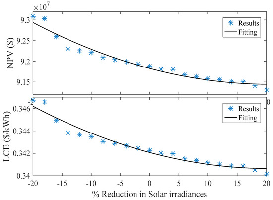 The variations of TPC and LCE along with ±20% change in solar irradiance.