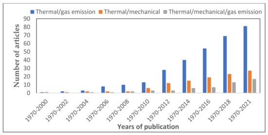 Number of articles published on thermal and gas emission keywords.