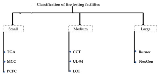 The fire behaviour of polymer composite materials can be studied using three main classes of test facilities as grouped below in Figure 4.