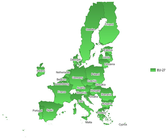 The Sustainable Development Goals (SDG) have been set for the whole world, both for developed and developing countries. They are based on three pillars: economic growth, social inclusion, and environmental protection [22]. Due to the limited amount of fossil energy resources, sustainable development is becoming increasingly important. Optimal consumption of energy resources is significant due to the growing demand for energy [26,27]. The level of achievement of individual goals varies depending on the country in question. The presented research focuses on analyzing the implementation of the Sustainable Development Goals in the EU-27 European Union countries. According to the treaties of the European Union, sustainable development means synergistic activities in the field of economic development, as well as environmental protection and policy. These activities are aimed at meeting the needs of EU citizens today, but also in the future [28].