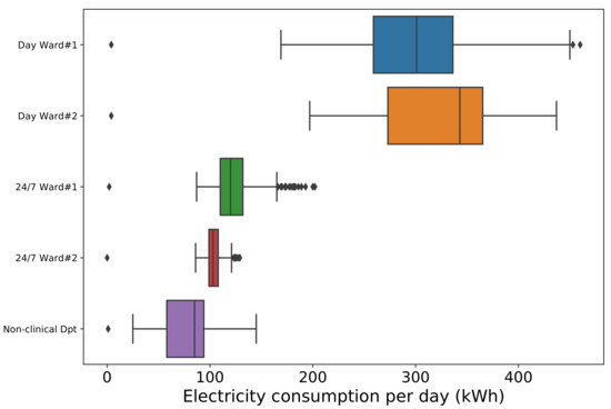 - Shi, Y.; Yan, Z.; Li, C.; Li, C. Energy consumption and building layouts of public hospital buildings: A survey of 30 buildings in the cold region of China. Sustain. Cities Soc. 2021, 32, 103247. [Google Scholar] [CrossRef]