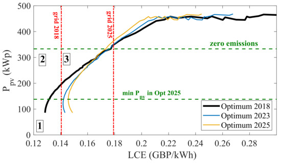 - If our projections of grid-emissions and cost parameters are accurate, then the optimum systems will become more cost effective in the future.
