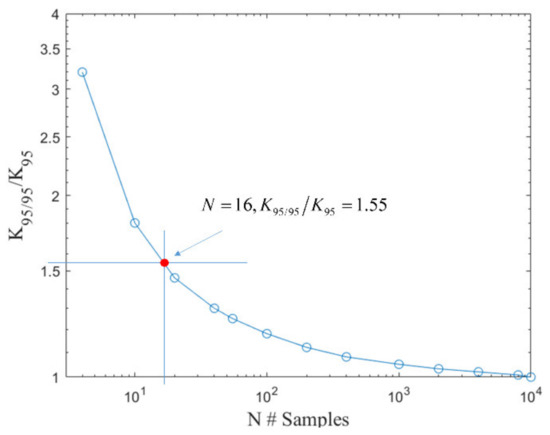 K, one can have higher confidence that a single estimate of the sample mean and standard deviation can produce an upper threshold for the 95% tolerance interval. This exercise can be repeated by gradually increasing the