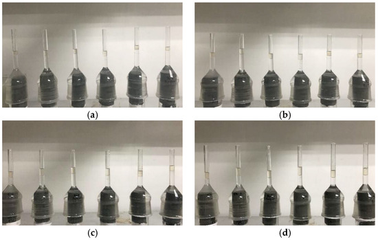 In short, after half an hour of an experiment, oil beads appear on the core surface. With imbibition, continuously, oil beads become larger, detach from the core, and finally gather in the graduated tube of the Amott cell. Figure 2 gives an example of time snapshots in imbibition experiments for investigating salinity effects. The detailed results of oil production profiles are summarized in Figure 3, Figure 4, Figure 5, Figure 6, Figure 7 and Figure 8 for controlling factors, respectively, which can refer to the following subsections.
