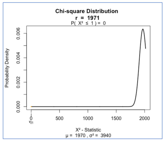 At the beginning of the analysis, the spelling of all keywords and hashtags was unified by introducing small letters and removing spaces. Then, two sets were combined by using the keyword WORDS$ as an identifier of the same keyword, and all items were filtered which were counted at least once for the same WORD$. For the RxC test, i.e., Pearson’s chi-squared statistical test, the set was narrowed down to at least 4-fold counts—both in the column of keywords (MOST) and the column of hashtags (HASH). The result of the test using R (chisq.test(chi2$MOST, chi2$HASH) points to a strong correlation between both sets: statistic = 2262.308, 1971 degrees of freedom, p = 4.507 × 10−6 (Figure 12).
