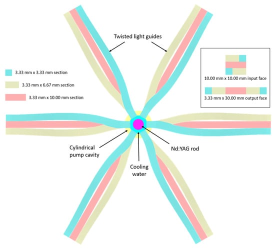- Bernardes, P.H.; Liang, D. Solid-state laser pumping by light guides. Appl. Opt. 2006, 45, 3811–3816. [Google Scholar] [CrossRef]