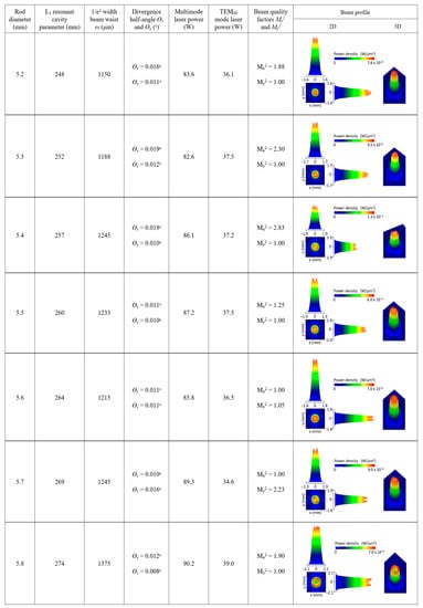 Summary of the laser beam profiles obtained as a function of the Nd:YAG laser rod diameter through LASCAD® analysis.