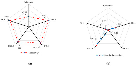 (a) Porosity of fiber mortar and (b) standard deviation.