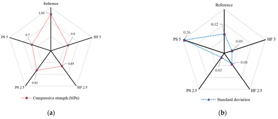 (a) Compressive strength of fiber mortar; (b) standard deviation.