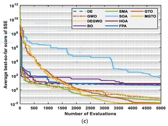 The MGTO is employed to find the values of seven unknown parameters based on minimizing the error value between the measured and estimated current using an objective function known as the sum of the squared errors (SSE). The SSE is mathematically formulated as shown in (25) []: