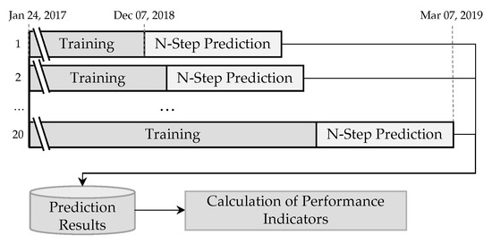 The validation parts of the datasets that range from 7 December 2018 to 7 March 2019 (and were not considered during the model selection stage) are therefore utilized to simulate the model predictions on newly added data. For this, an expanding window approach as shown in