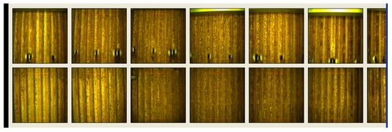 The system software performs the photograph archiving and registers the data indicating the position as well as further analysis of what is visible in the photographs [93]. The information is saved in the database, which enables one to visualize the whole wall or a selected fragment bigger than a single photograph in the form of a photomosaic (Figure 6). The possible use of machine vision systems depends on what has been photographed and what kind of functions are implemented in the software. In the case of self-propelled devices, the software will also aid the device movement control.