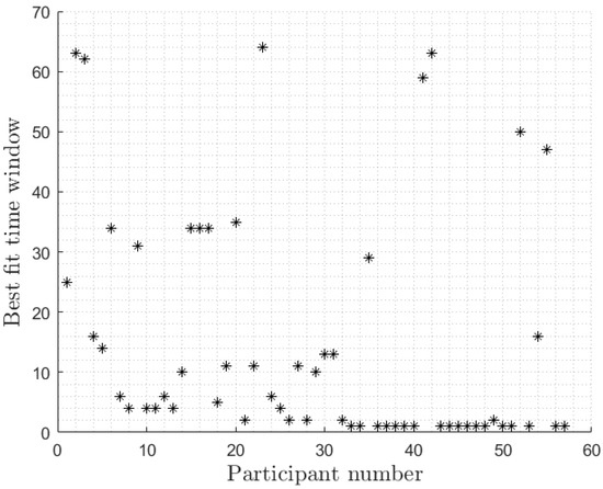 Figure 3 shows the size of the best fitting time window obtained by (16) for each participant with the participants being ordered as stated earlier.