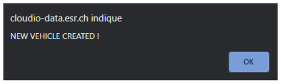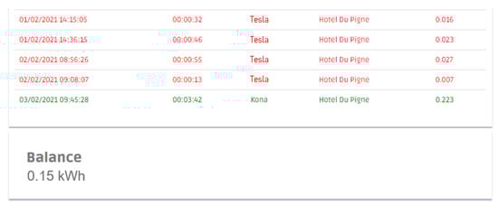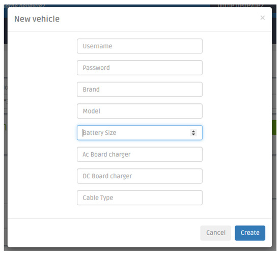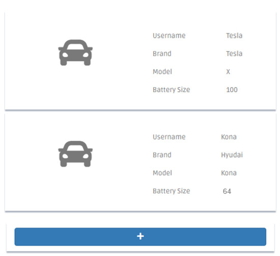 To enable the EV’s participation in the blockchain-supported charging process, the hotel owner must register the EV in the web interface. Once the EV can be found in the hotel’s digital vehicle inventory, this step becomes unnecessary. The registration procedure generates a unique vehicle identifier idVehicle together with the username–password pair. The latter is shared with hotel guests to enable access to the mobile application used for managing the EV charging process. Besides the standard way to log in, the EV user can utilize the generated QR code, thus avoiding memorizing complex login details. It is expected that the password and QR code will be automatically regenerated.
