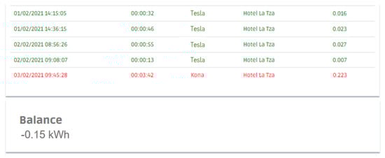- The Server links the elements of the system architecture and enables communication from within. Moreover, it provides the visual dashboard to the hotel owner, where the latter can view the information in the interactive mode and issue the requests to the charging station. The data displayed include the hotel’s measurements and the information related to the concluded charging processes such as charging start and finish times, duration, cost, and energy content. In particular, the hotel owner can browse through the charging history of either the charging station or the EV that belongs to the hotel.