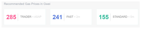 - Ethereum. Ethereum Gas Station. 2021. Available online: https://ethgasstation.info/ (accessed on 2 February 2021).