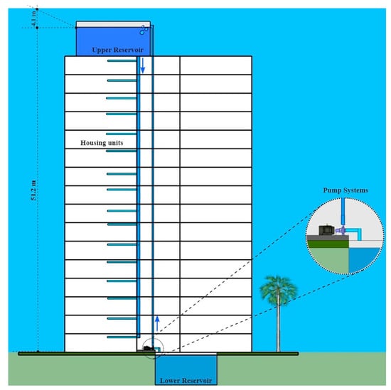 In this context, the trend of continuous urbanization will increase the number of megacities with more than 10 million inhabitants, which may also increase the number of vertical multifamily housing buildings, making this building an attractive option [7,8]. It is observed that the higher the building and the denser its occupation, the higher the energy demand will be, including the energy consumption of the water pumping systems.