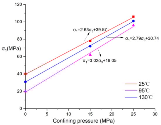 Fitting curve of confining pressure and σ1 at different temperatures.