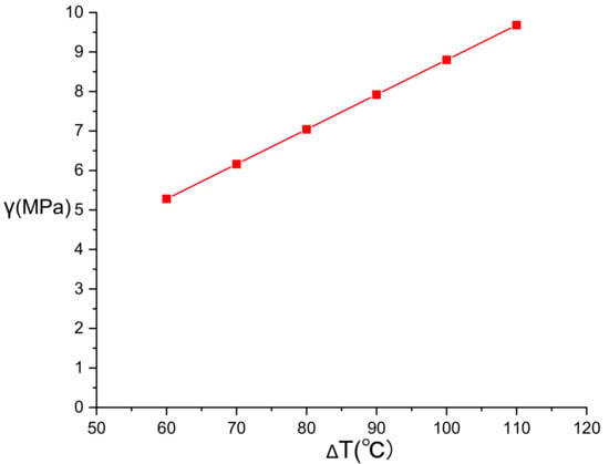 γ can be regarded as the temperature-stress factor of the sheath (MPa/mm2), and Equation (20) reflects the adverse effect of temperature as a kind of loading on the sheath. The greater γ is, the greater the impact of temperature changes on the sheath during the fracturing process is. Conversely, the effect of temperature on the sheath is not only involving temperature load. Apart from this, the cement properties are affected by the formation temperature and its material parameters are changed; thus, Equation (18) can be rewritten as