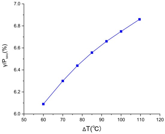 The effect of temperature stress and material properties on the total maximum cycle load Pmax of the sheath rises with the temperature difference, as shown in Figure 11, the temperature-induced reduction of the bearing capacity accounts for 10–12% of the total bearing capacity of the sheath.