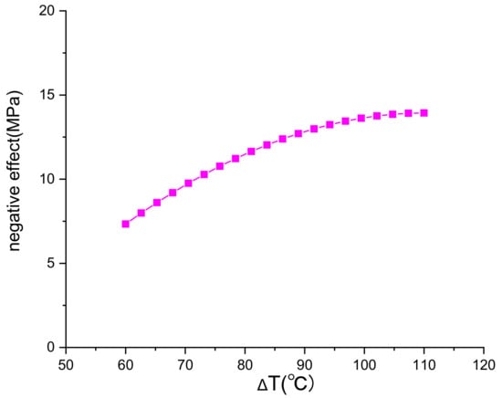 Equation (19) can be used to express that the negative effect of temperature change is related to the elasticity modulus, Poisson’s ratio, linear expansion coefficient and temperature difference of the cement. From the previous compression tests, the elasticity modulus ranges from 4 to 10 GPa, Poisson’s ratio ranges from 0.19 to 0.06, and the coefficient of thermal expansion of cement is about 1.5 × 10−5/°C. The variation range of the above-related material parameters is limited, the influence of them on the deep well environment is not maximal. For deep wells or ultra-deep wells, the temperature difference may reach 100 °C or higher and is the most important factor.